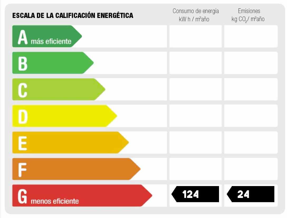- Consumo de energía (kwh/m2 año): 124.