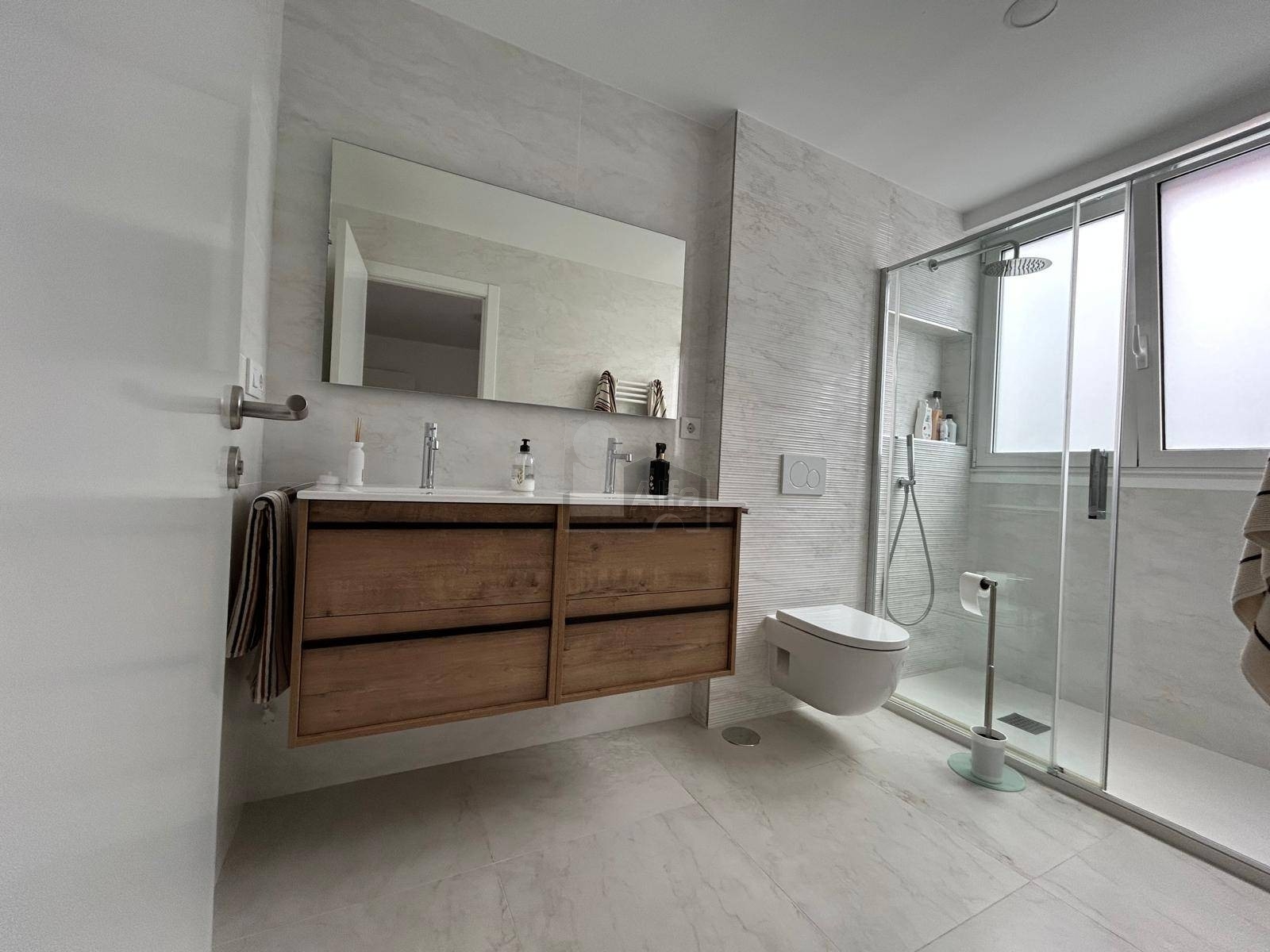 La vivienda destaca por su extraordinaria luminosidad, ya que recibe luz natural durante todo el día. Ha sido completamente reformada con un estilo moderno, integrando de forma armoniosa el recibidor con la cocina, el salón y el comedor, creando un espacio abierto y acogedor con salida directa a una de las terrazas. Dispone además de una zona de lavandería independiente. La zona de descanso, separada por un pasillo para mayor privacidad, cuenta con tres dormitorios y dos baños, uno de ellos en suite. Desde uno de los dormitorios se accede a una agradable terraza semicubierta, muy tranquila y silenciosa, para esos momentos de relax.